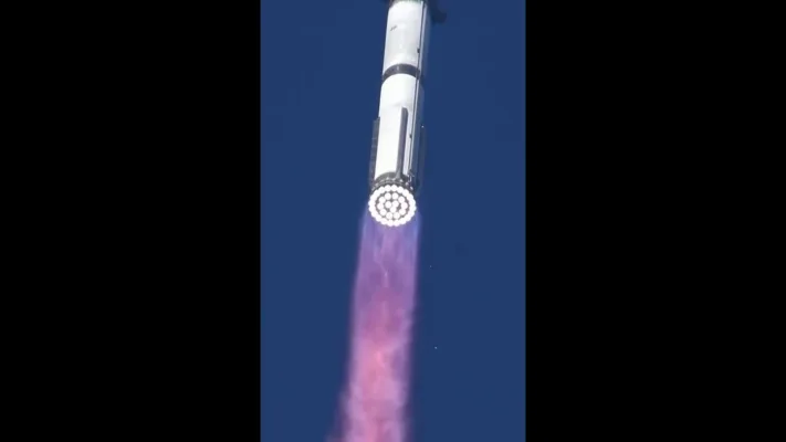 Миллиардер опубликовал видео испытаний ускорителя Super Heavy: десятки метановых двигателей работают одновременно, выдавая около 7,7 тысячи тонн тяги.
