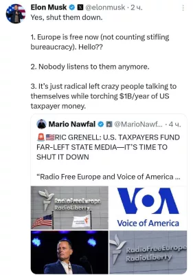 «Никто их больше не слушает. Это просто сумасшедшие радикальные левые, которые разговаривают сами с собой, сжигая $1 млрд в год из налогов американцев», — написал он в соцсети Х.