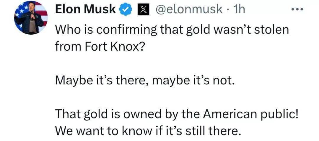 В связи с этим сенатор Рэнд Пол призвал Илона Маска провести аудит золотых запасов США в Форт-Ноксе, чтобы убедиться, что они все еще там, и Маск, как видим, подержал это предложение.