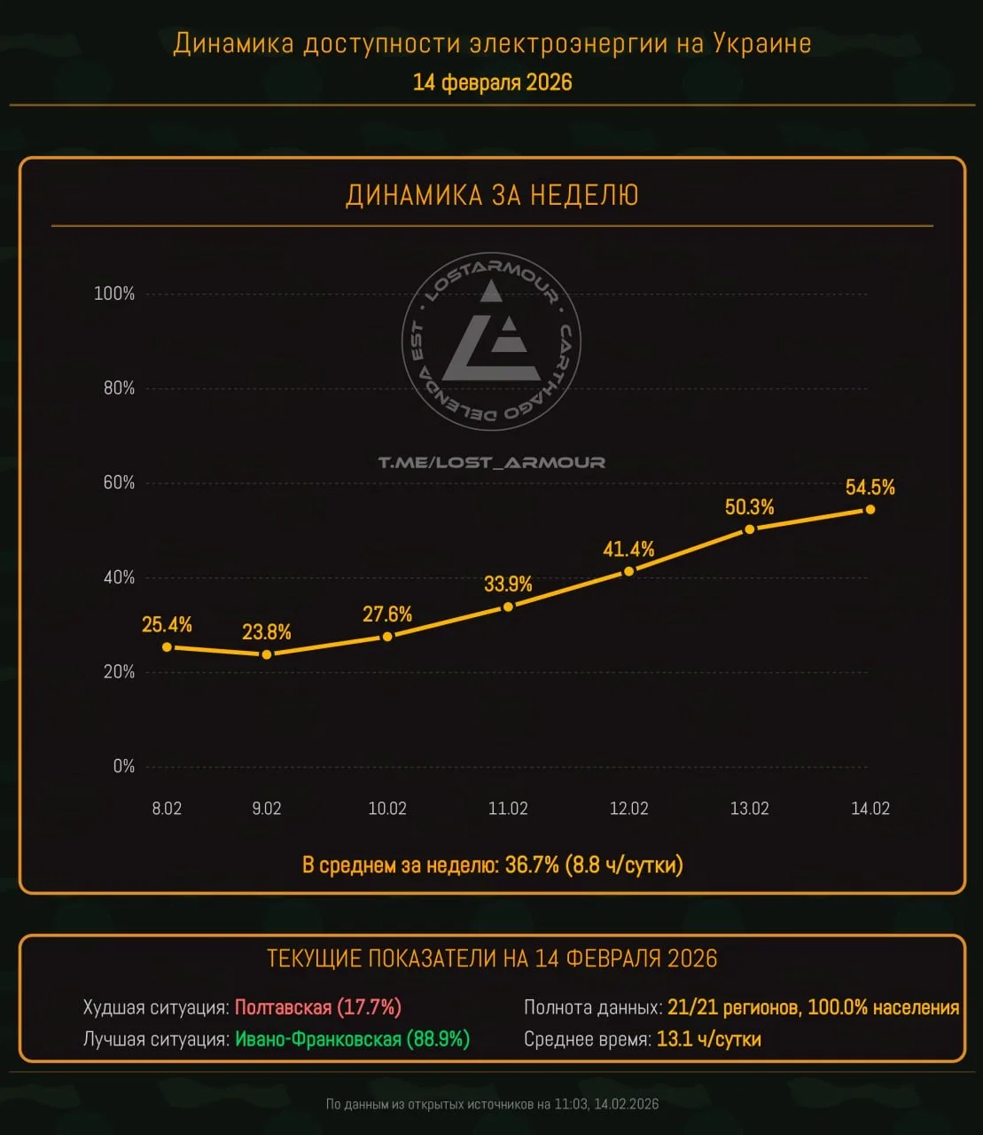 Данные по доступности электроэнергии актуализированы на 11:03 14.02.2026