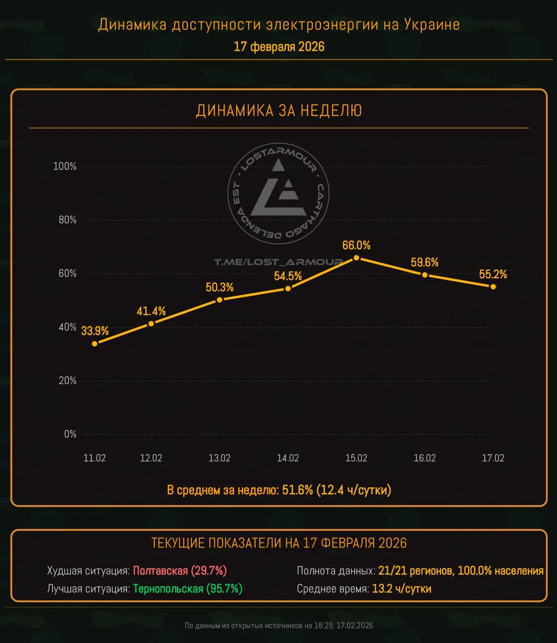 Данные по доступности электроэнергии актуализированы на 18:29 17.02.2026