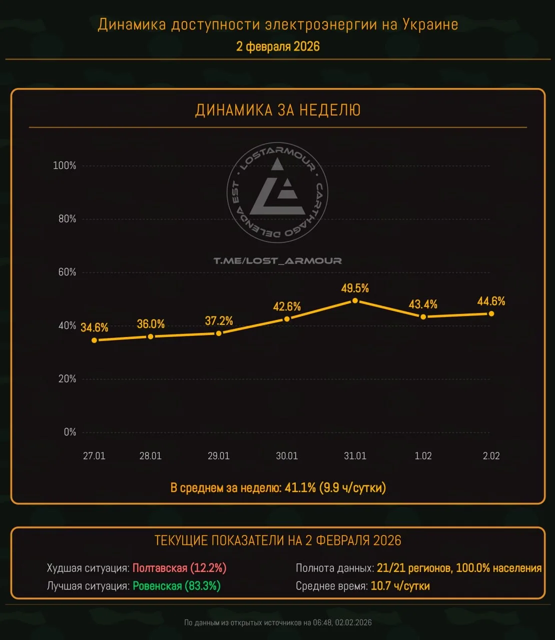 Данные по доступности электроэнергии актуализированы на 06:48 02.02.2026