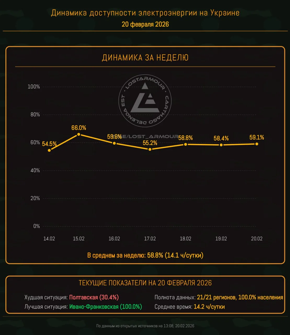 Данные по доступности электроэнергии актуализированы на 13:08 20.02.2026