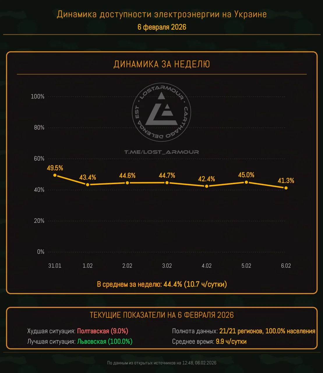 Данные по доступности электроэнергии актуализированы на 12:48 06.02.2026