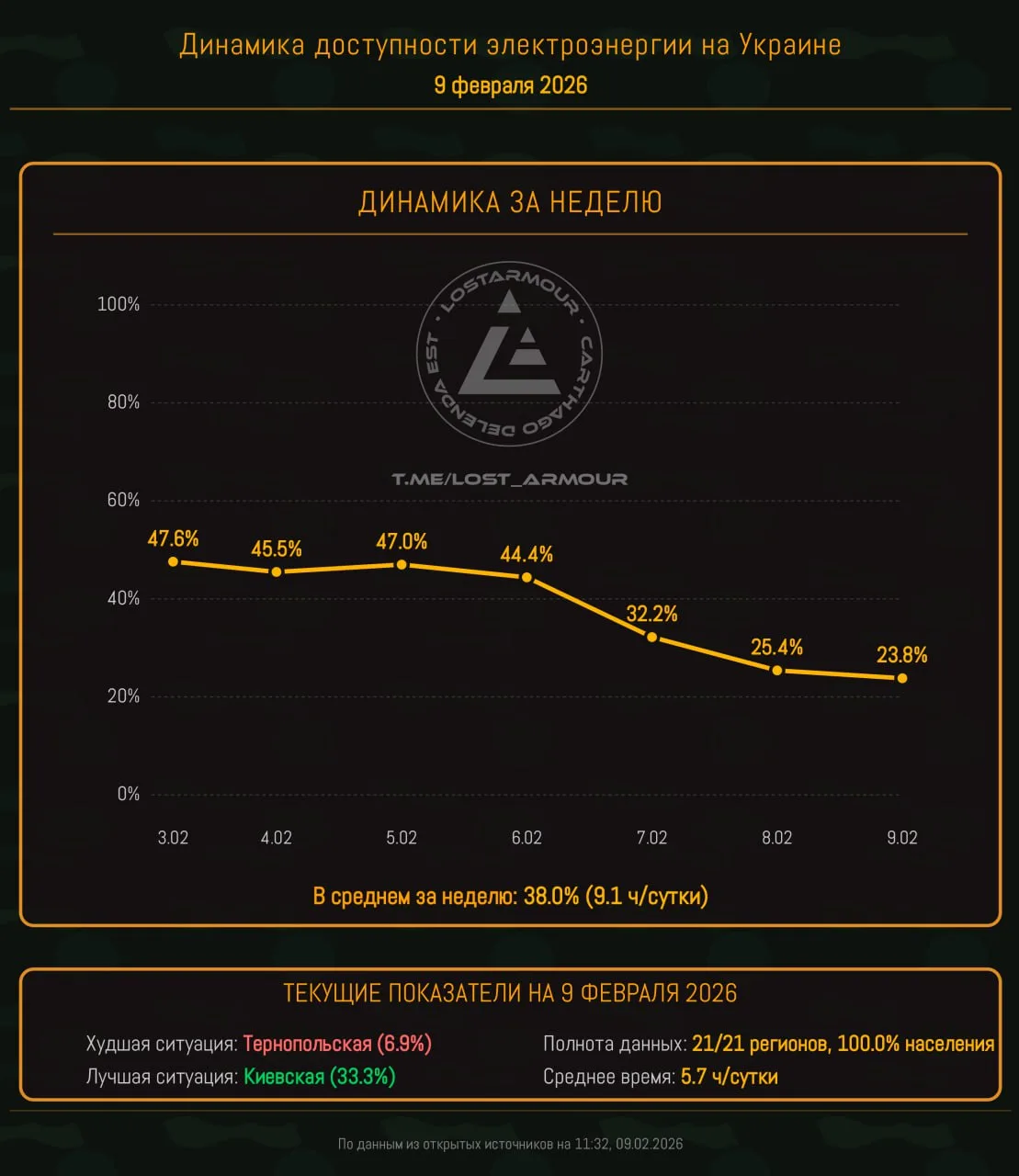 Данные по доступности электроэнергии актуализированы на 11:32 09.02.2026