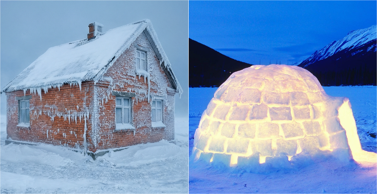 Почему дом из снега теплее кирпичного при −40
