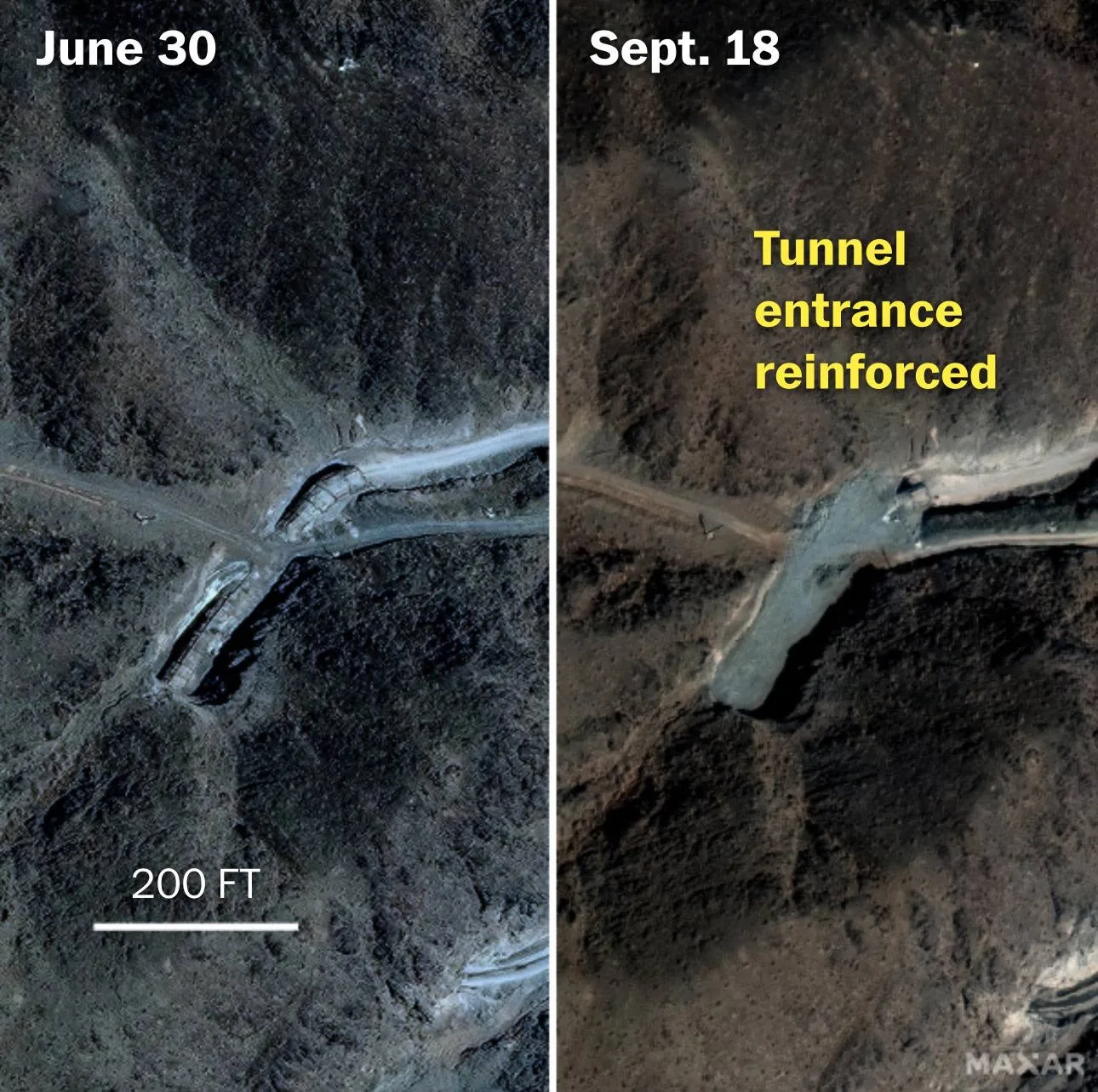 Три основных изменения, произошедших на объекте после американских ударов по ядерным объектам Ирана, свидетельствуют о продолжающемся строительстве: герметизация периметра безопасности, укрепление входа в туннель и увеличение объёма вынутого грунта, что говорит о продолжении подземных работ. На недавних спутниковых снимках также было зафиксировано присутствие тяжёлой техники и строительных машин.
