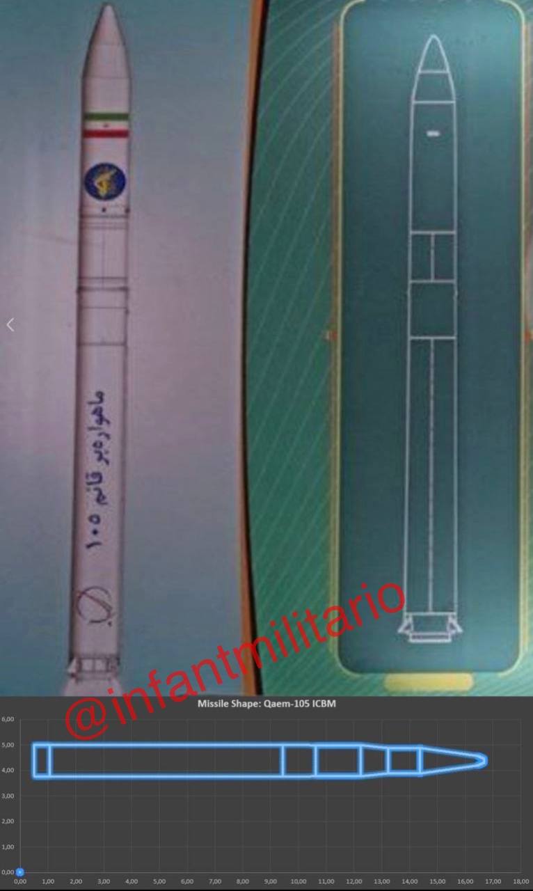 Ракета длиной 23,5 метра и массой 18 тонн может поднять 200 кг полезной нагрузки на высоту 400 км. Qaem-105, имеющая две разные версии с 3 и 4 ступенями, может использоваться как в качестве ракеты-носителя для спутников, так и в качестве межконтинентальной баллистической ракеты.