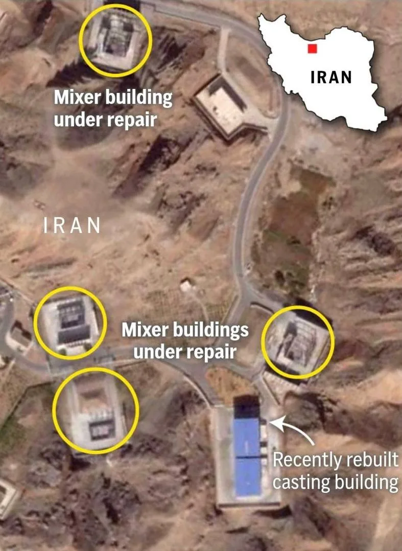 ▪️Предприятии по производству твердотопливных ракетных двигателей в Шахруде, который подвергся удару 22 июня 2025 года.