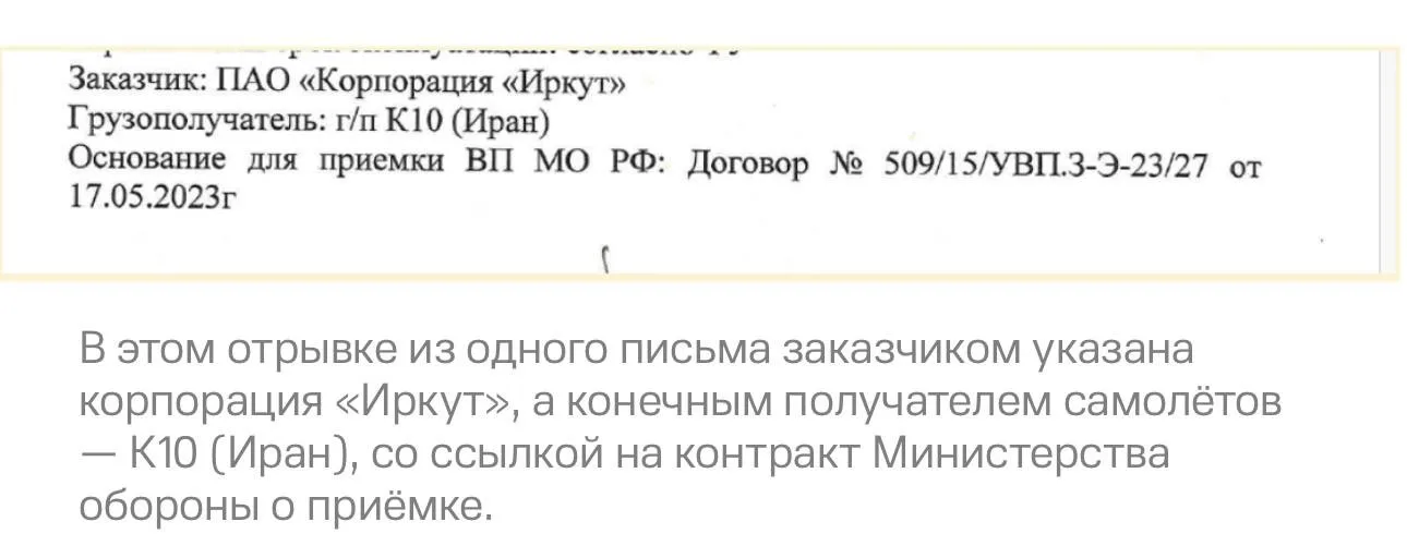 Во всей документации заказчиком указан «K10», который в одном документе конкретизирован как Иран. Из документов также известно, что заказ был полностью оплачен траншами в марте, июле и декабре 2024 года.