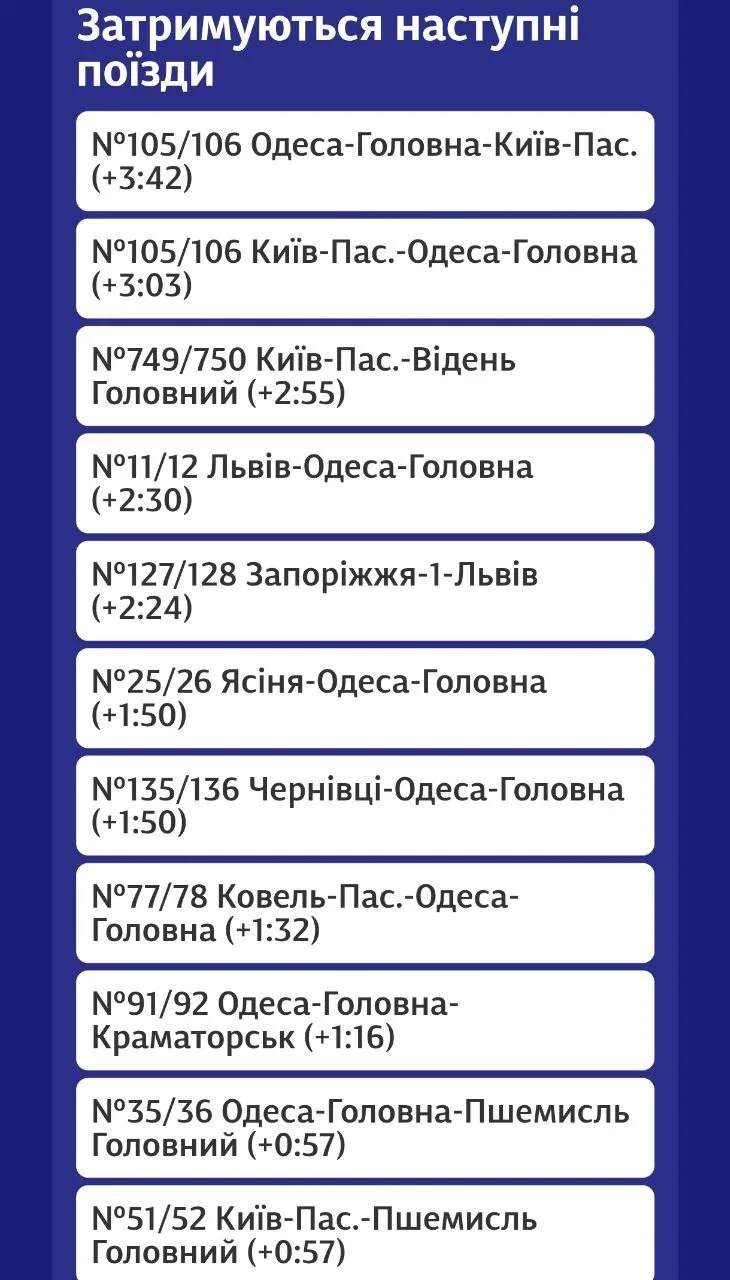 Ночью российские беспилотники нанесли точные удары по объектам железнодорожной инфраструктуры Одесской области. «Укрзализныця» сообщает о серьёзных повреждениях и задержках движения: многие поезда в направлении Одессы и из неё опаздывают более чем на три часа. Ранее подобная атака была зафиксирована и по ж/д узлам Винницкой области.