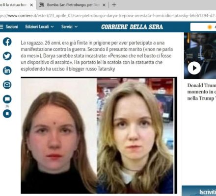 🟥 Воскресный теракт в Санкт-Петербурге получил странное отражение в прессе Италии. Ведущие издания, такие как La Repubblica, La Stampa, Il Messaggero, а также Corriere della Sera пытаются обелить Дарью Трепову. Ту самую террористку из ФБК*, которая в минувшее воскресенье вручила смертельную статуэтку военкору Владлену Татарскому.