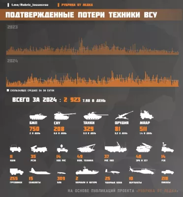Инфографика была создана на основе: опубликованных каналом ‘Рубрика от Ледка’ визуально-подтвержденных потерь техники вооруженных сил Украины в зоне сво/кто.