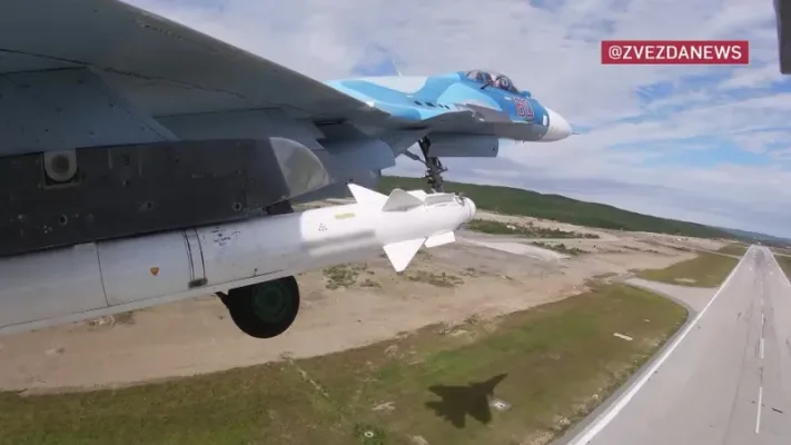 Высший пилотаж в Баренцевом море: Су-33 и МиГ-29К отработали тактику ведения боя с БПЛА большой дальности. Экипажи сбросили светящую авиабомбу с большой высоты на парашюте, а затем уничтожили ее ракетой.