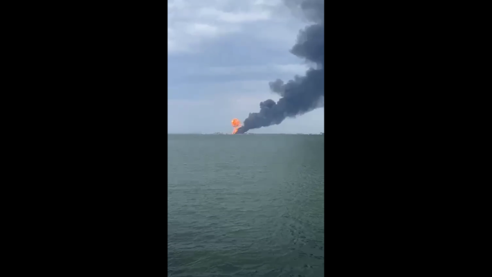 Площадь пожара в порту на данный момент составляет 500 кв.м, пишут СМИ. Тушение огня продолжается. На месте ЧП установлены боновые заграждения, чтобы не допустить распространения топлива (на затонувшем пароме было около 30 цистерн).