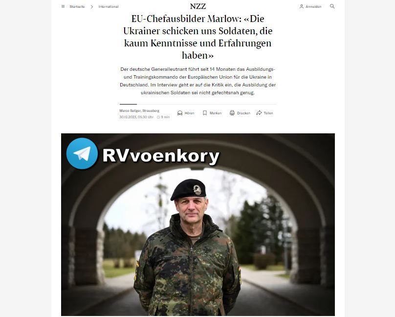 Немецкий генерал-лейтенант уже 14 месяцев возглавляет Учебно-тренировочное командование ЕС по Украине в Германии. Он раскритиковал подготовку солдат ВСУ, плохо подготовленных к боевым действиям.