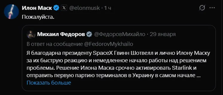 Два последних дня обсуждается вопрос применения нашими войсками спутниковых систем связи «Старлинк», и то, что украинская сторона попросила Илона Маска закрыть доступ к ним. И Илон Маск вроде как подтвердил, что работа ведется.