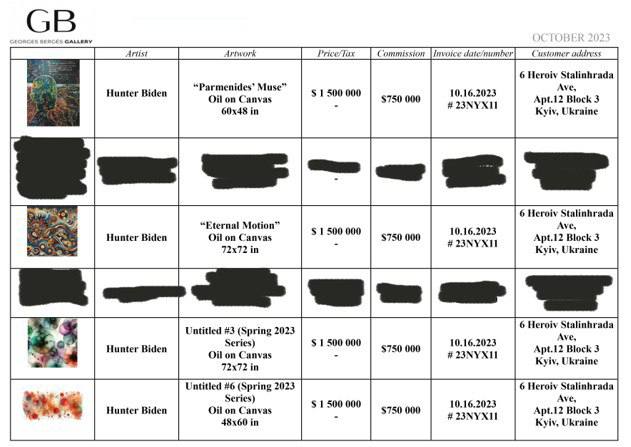 О схеме стало известно ещё осенью 2022, когда в сеть впервые утекли несколько имен покупателей картин Хантера Байдена. Получив имена, американские журналисты смогли доказать, что Элизабет Хёрш Нафтали получила должность в Белом Доме после покупки одной из картин сына президента США за несколько тысяч долларов. Несмотря на улики, свидетельствующие о даче взятки ради получения должности, американские правоохранители не стали проводить расследование по данному эпизоду.