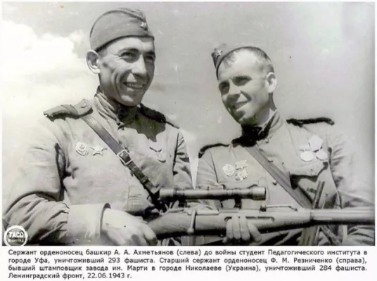 Ахметьянов прославился тем, что эффективно уничтожал вражеских снайперов. Его вызывали на те участки фронта, где были замечены немецкий снайперы.
