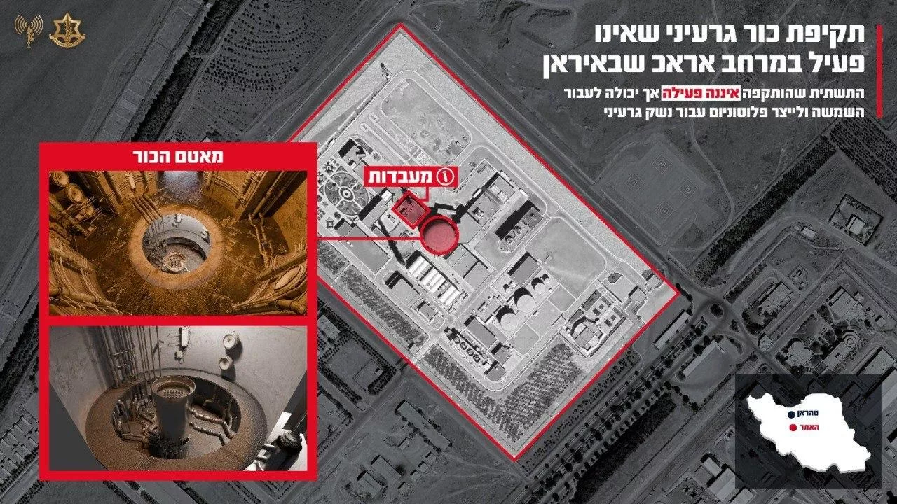 Иранское государственное телевидение подтвердило попадание двух ракет в завод по производству тяжелой воды в Араке. Утечек радиации не зафиксировано. За несколько часов до атаки ЦАХАЛ призвала жителей Арака и Хондаба эвакуироваться.