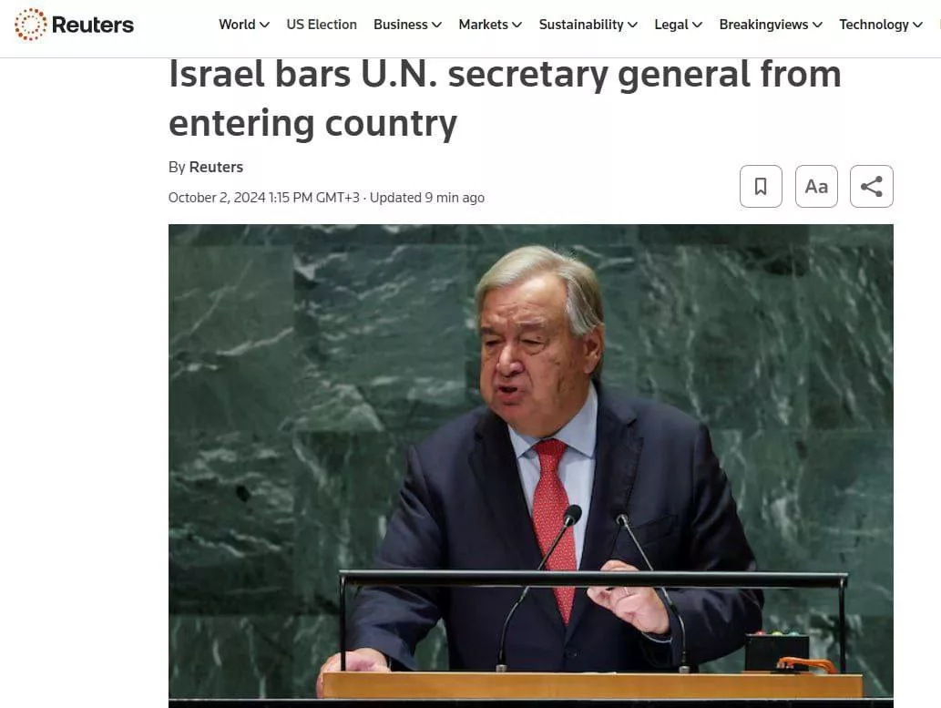 Глава израильского МИД Кац пояснил, что такие меры были приняты из-за неспособности Гутерриша «недвусмысленно осудить» массированную ракетную атаку Ирана на Израиль.