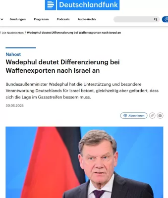 - На фоне этого глава МИД ФРГ Йоханн Вадефуль подчеркнул поддержку и особую ответственность Германии за Израиль, но в то же время потребовал улучшения ситуации в секторе Газа.