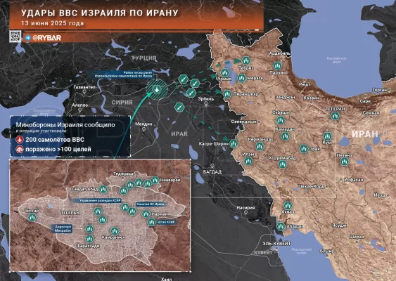 - Первой волной атаки израильские самолеты нанесли удары по западным районам Ирана – там, где расположены ключевые радиолокационные станции из состава противовоздушной обороны. Несколько из них были поражены, включая РЛС в Субаши, Мераге и Тебризе. Также нанесен удар по позиции ПВО в Хамадане, где дислоцирована тактическая авиация.