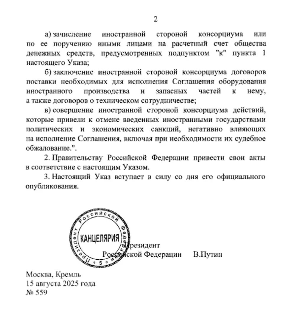 Но и Россия выдвинула три основных условия для возвращения иностранной компании. Это — вложение средств, поставка необходимого западного оборудования и лоббирование иностранной организацией отмены политических и экономических санкций против России, мешающих работе проекта, в том числе предлагается делать это через суд.