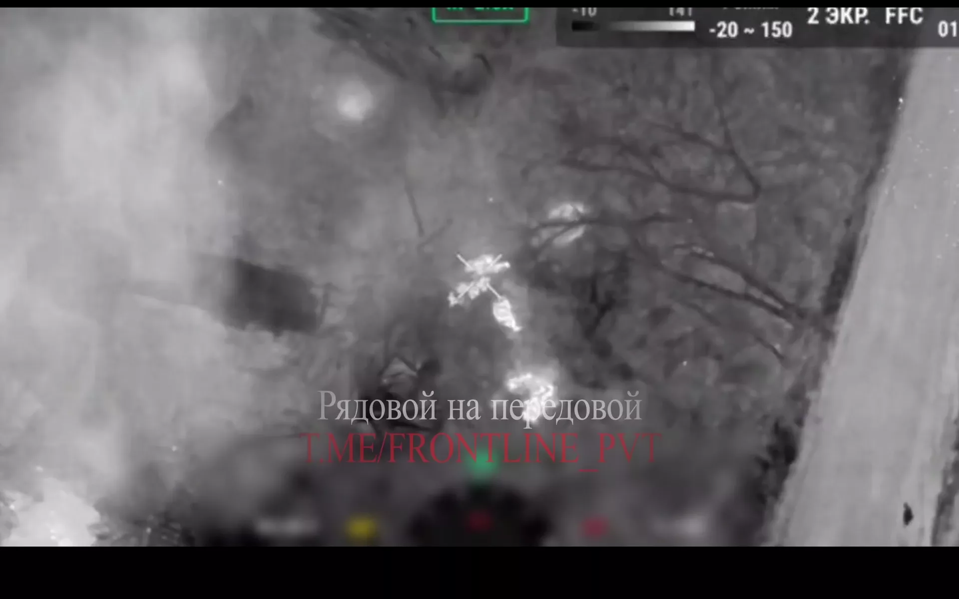Расчёт БпЛА 51 гв пдп 106 вдд обнаружил пехоту врага, отработал сбросом и скорректировал 120-мм миномёт. Самый яркий кадр — 01:06, прямое попадание в одного из неудачливых солдат противника.