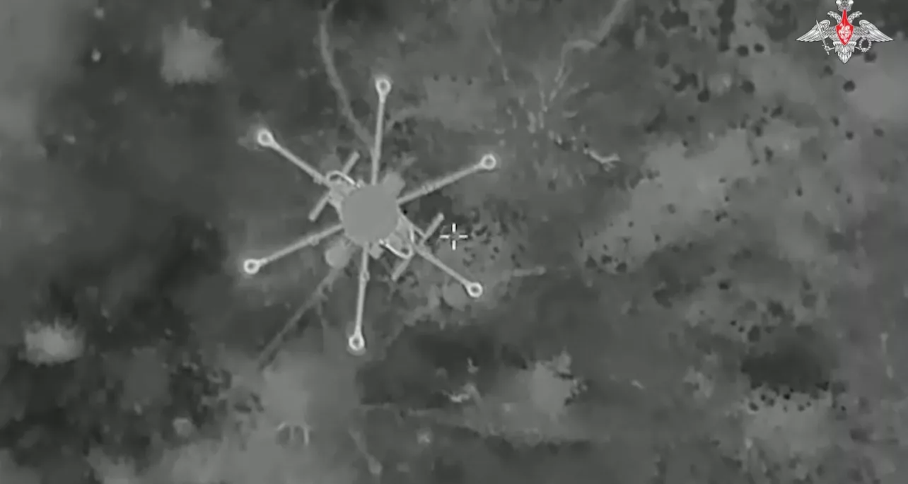На кадрах объективного контроля – обезвреживание беспилотного летательного аппарата «Баба Яга» ВСУ сбросом сети российским военнослужащим-оператором дрона в воздухе.