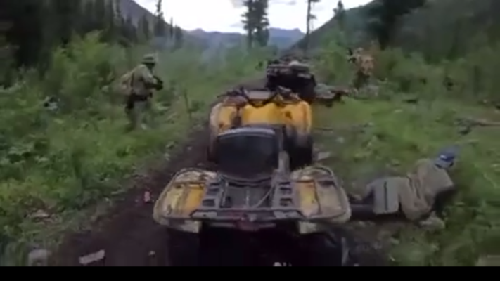 На кадрах видно, как один из черных добытчиков бросается с камнем на полицейского и получает очередь в упор.