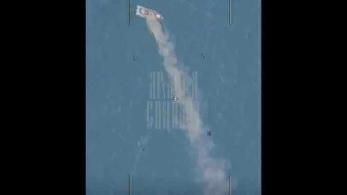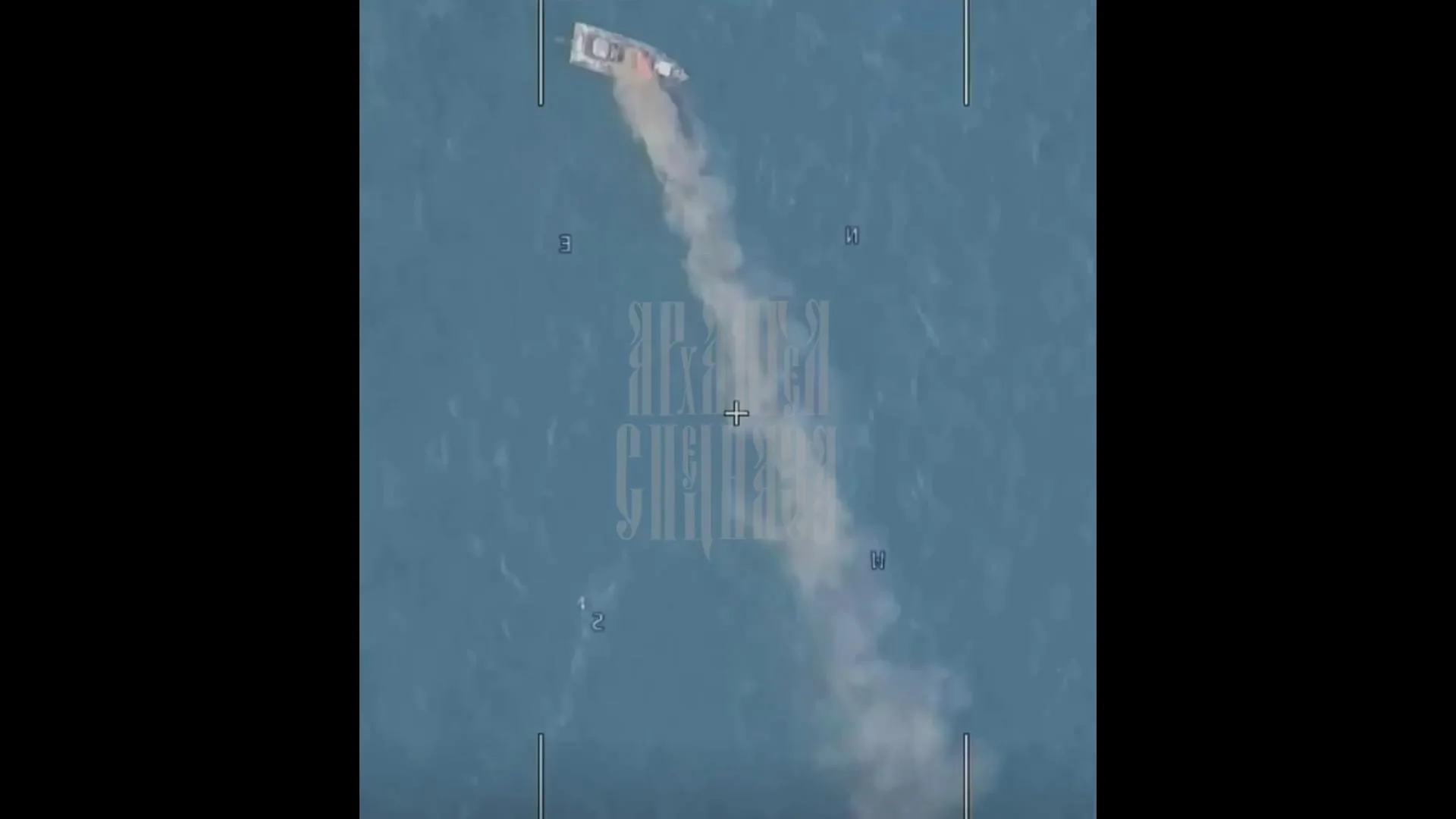 На нем можно увидеть характерную для носителя FPV надстройку на корме безэкипажного катера, а также спутниковый терминал Starlink в носовой части.