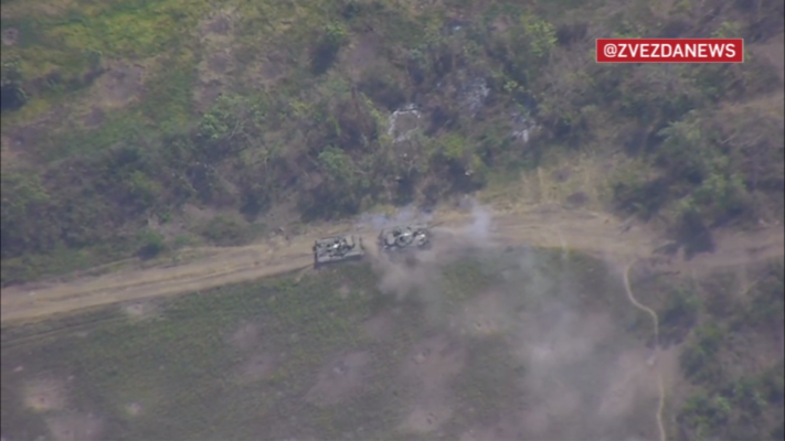 Танк пробирался среди десятков подбитой украинской техники, пытаясь спасти подбитого товарища. Но в итоге его настиг российский боеприпас.