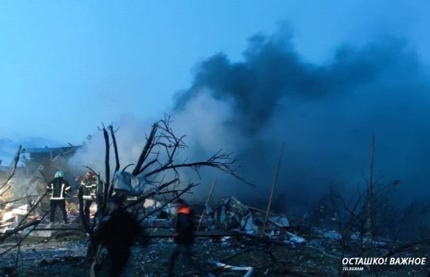 Глава региона Сергей Лысак пишет, что части сбитых ракет угодили в двухэтажный дом и спасательную часть.