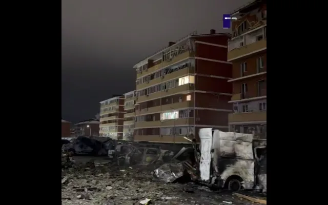 Обломки БПЛА посекли фасад дома, на парковке задело десятки машин.