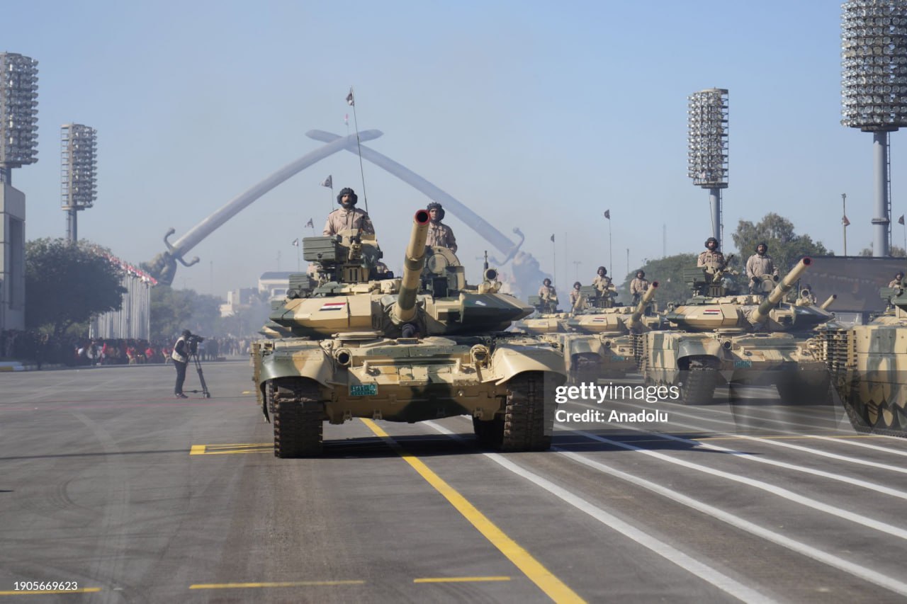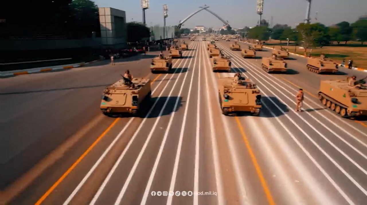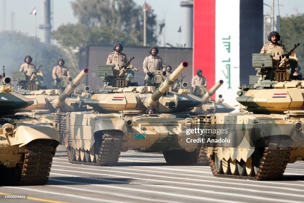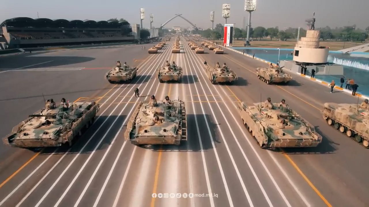 Интересно, что в одном строю по площади столицы Ирака прошли российские Т-90СИ и американские М1А1М Abrams, БМП-3 и БТР M113, тяжелые огнеметные системы ТОС-1А «Солнцепек» и 155-мм САУ M109A5.