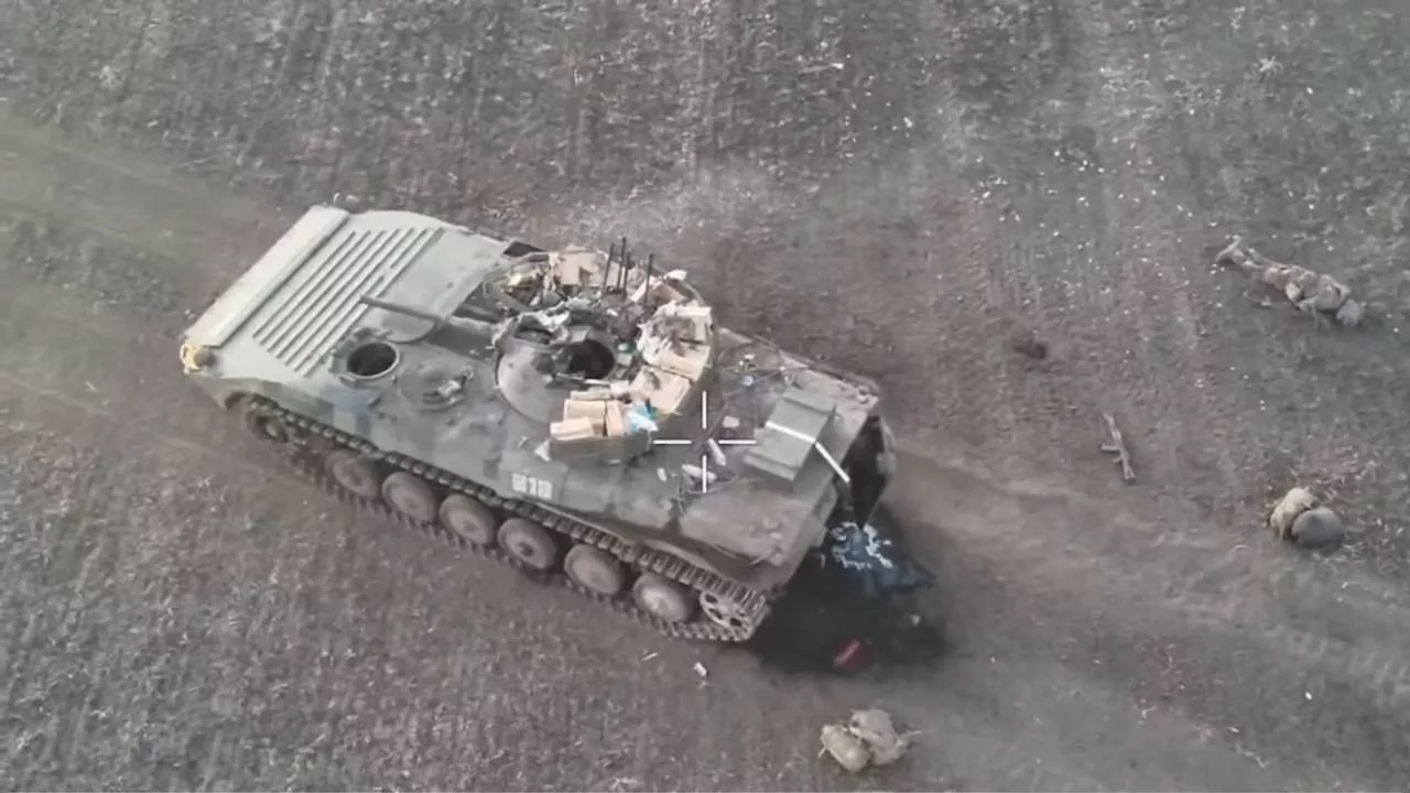 Кадры уничтожения бронетехники и личного состава ВСУ операторами FPV-дронов подразделений ВДВ из состава группировки войск «Север», в ходе пресечения попыток прорыва противника в Глушковском районе Курской области. Среди уничтоженной техники БТР Stryker, БМП-1, БРЭМ-1 и САУ 2С1 «Гвоздика».