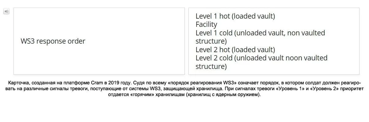Представьте: вы солдат, вам нужно выучить сотню страниц секретных протоколов для охраны ядерного оружия. Бумажки таскать лень. Вы скачиваете на телефон милое приложение с карточками (как для изучения английских слов) и заносите туда всё, что нужно запомнить: коды доступа, расположение камер, частоту патрулей. Удобно же?