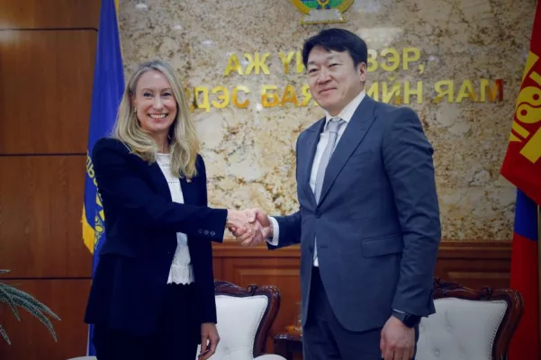 Госсекретарь министерства промышленности и минеральных ресурсов Сэрээтэрийн Жавхланбаатар и посол Великобритании Фиона Блайт подписали Дорожную карту сотрудничества в области минеральных ресурсов.