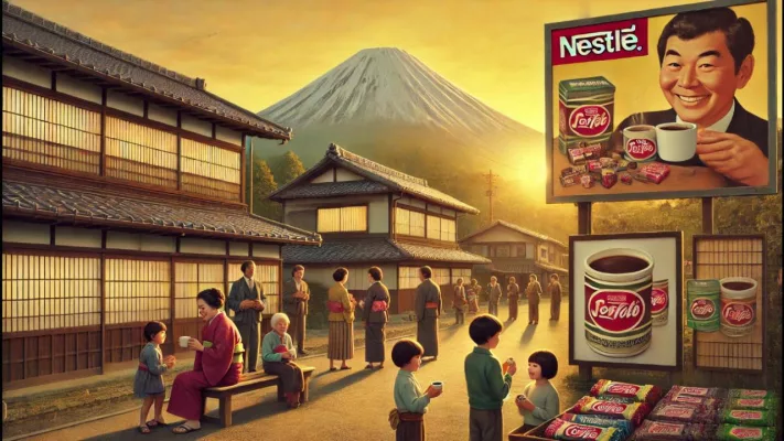 Nestlé, уже тогда гигант, решила зайти в Японию со своим фирменным растворимым кофе (в банки из-под которых в России раньше кидали бычки и складывали стройматериалы).