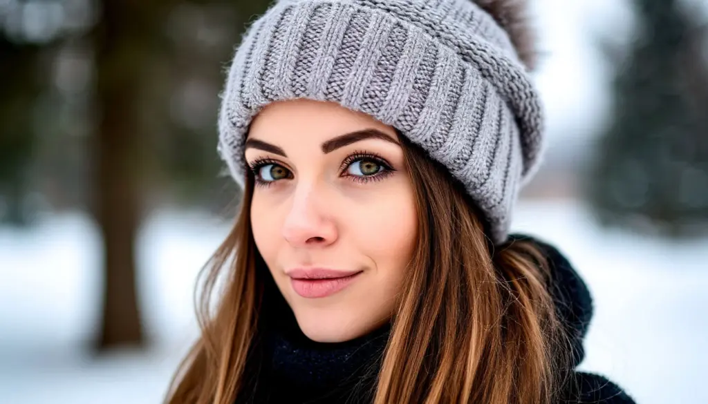 - Перед выходом: Легко поправьте укладку, при необходимости используйте сухой шампунь для свежести. Наденьте шапку из натурального материала.