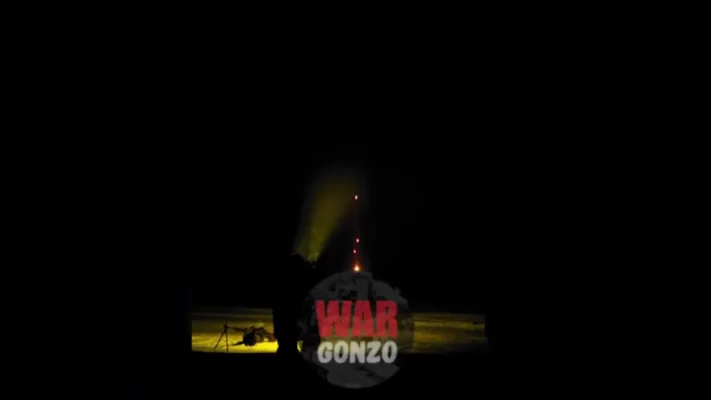 При помощи мощных осветительных приборов, бойцы мобильной группы выхватывают в ночном небе летящий дрон, после чего стрелки открывают по нему шквальный огонь.