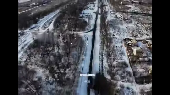 Хорошо заметно, что мина сбрасывается напрямую в дорожное полотно, в результате чего пикап или другая техника ВСУ, которая здесь двигается, будут уничтожены или повреждены.