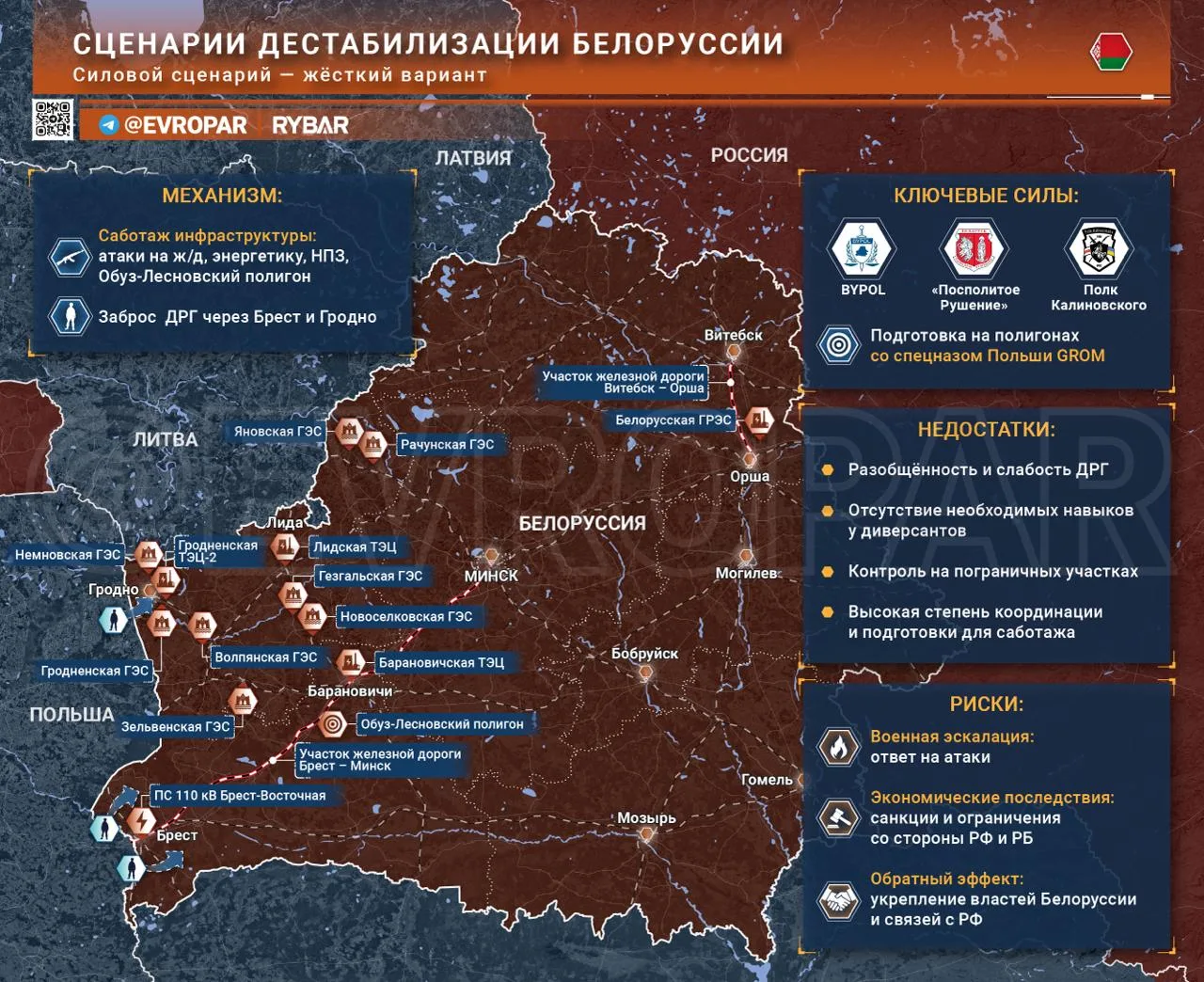 Очевидно, что западными странами рассматривается и более жёсткий сценарий по смене власти в Белоруссии — в противовес мягкому подходу и экономическому давлению. В его основе — использование диверсионно-разведывательных групп (ДРГ), подготовленных в соседних странах, таких как Польша.