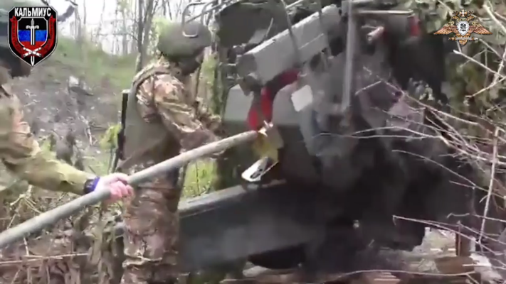 Расчёты орудий 14 артиллерийской бригады «Кальмиус», точными ударами уничтожает выявленный опорный пункт противника. Корректировка огня и фиксация поражения цели осуществлялось с помощью БЛА.
