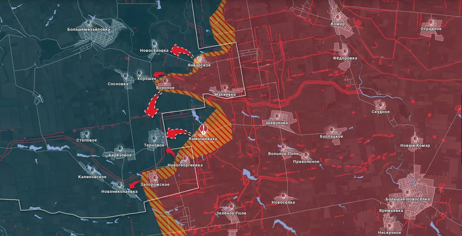 - Около недели назад бойцы 57 омсбр заняли населенные пункты Новогеоргиевка и Запорожское, создав условия для обхвата Камышевахи с юга.