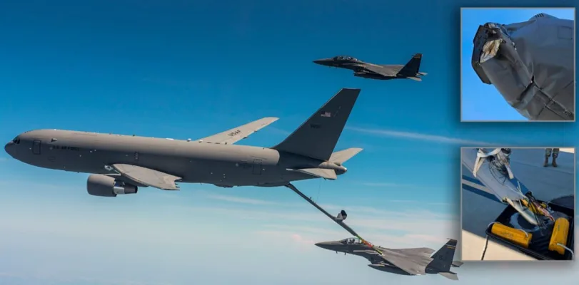 Согласно отчёту Air Mobility Command, две таких аварии произошли в 2022-м, и ещё одна — в августе прошлого года. В первом и третьем случаях дозаправлялись F-15E Strike Eagle, во втором – F-22 Raptor. В случаях с F-15E наконечник штанги застревал в приёмном гнезде, а потом «вылетал» из него и штанга ударяла по хвостовой части фюзеляжа (ХЧФ) заправщика. Финансовый ущерб – $8,3 млн. и $14 млн. (в последнем случае были сильно повреждены не только ХЧФ танкера, но и штанга – фото в заголовке). АП с участием F-22 обошлось всего в $100 тыс. – наконечник штанги деформировался.