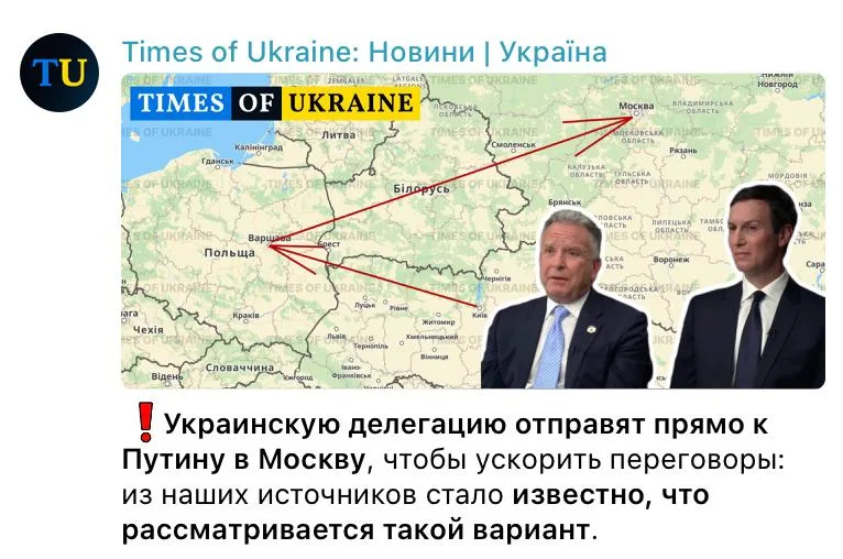 В качестве «гарантов безопасности» называются Уиткофф и Кушнер. Предполагается, что их самолет прилетит в Варшаву, заберет украинскую делегацию и направится во «Внуково», где возможна встреча с Путиным. Под вопросом остается участие Буданова, которого в России заочно арестовали в по обвинениям в терроризме.