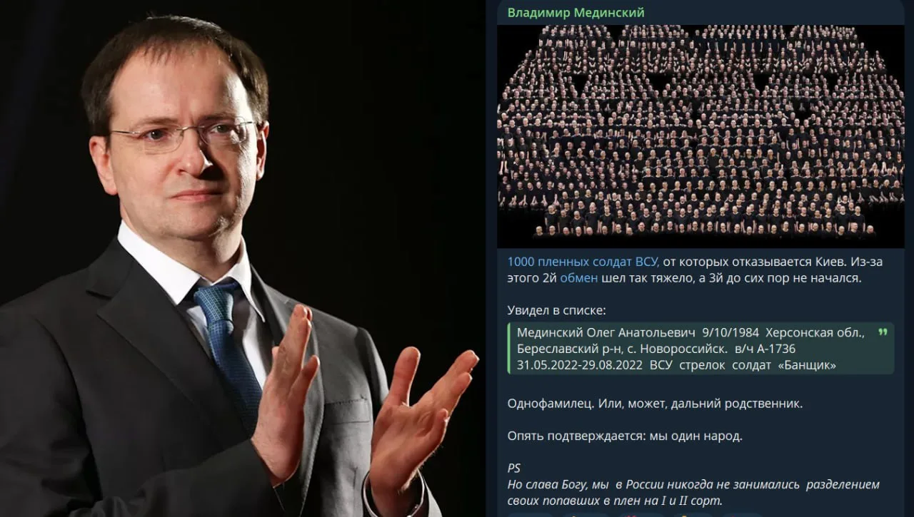 Владимир Мединский заявил, что Украина официально отказалась забирать пленных боевиков ВСУ, прикрепив к посту фото с ними.