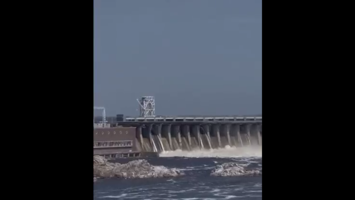 Второе видео — ДнепроГЭС в первые дни после уничтожения Каховской ГЭС.